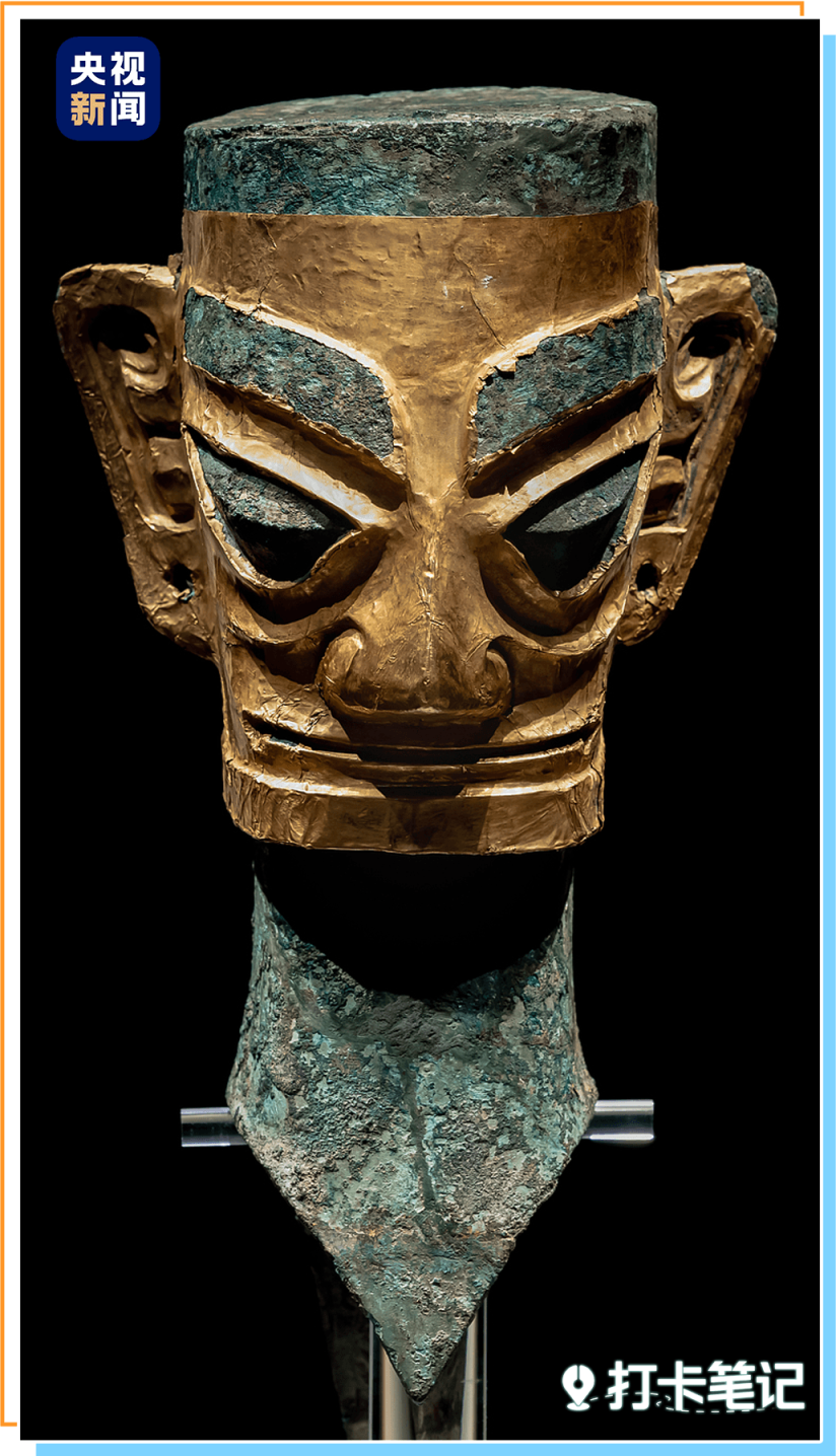 可爱的大粗眉、蒜头鼻结界兽,灵感来自位于四川广汉三星堆博物馆的戴金面罩青铜人头像和青铜大面具。